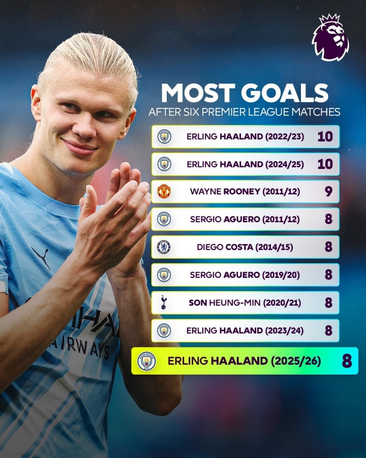 数据浮现,哈兰德本赛季前6轮攻入8个英超进球,这一数据不错排进英超单赛季前六轮弓手榜的前9。距离哈兰德我方在2022/23和2024/25赛季创下的6轮10球尚有差距。哈兰德加盟曼城以来4个赛季前六轮的进球数辨认为:10、8、10、8。