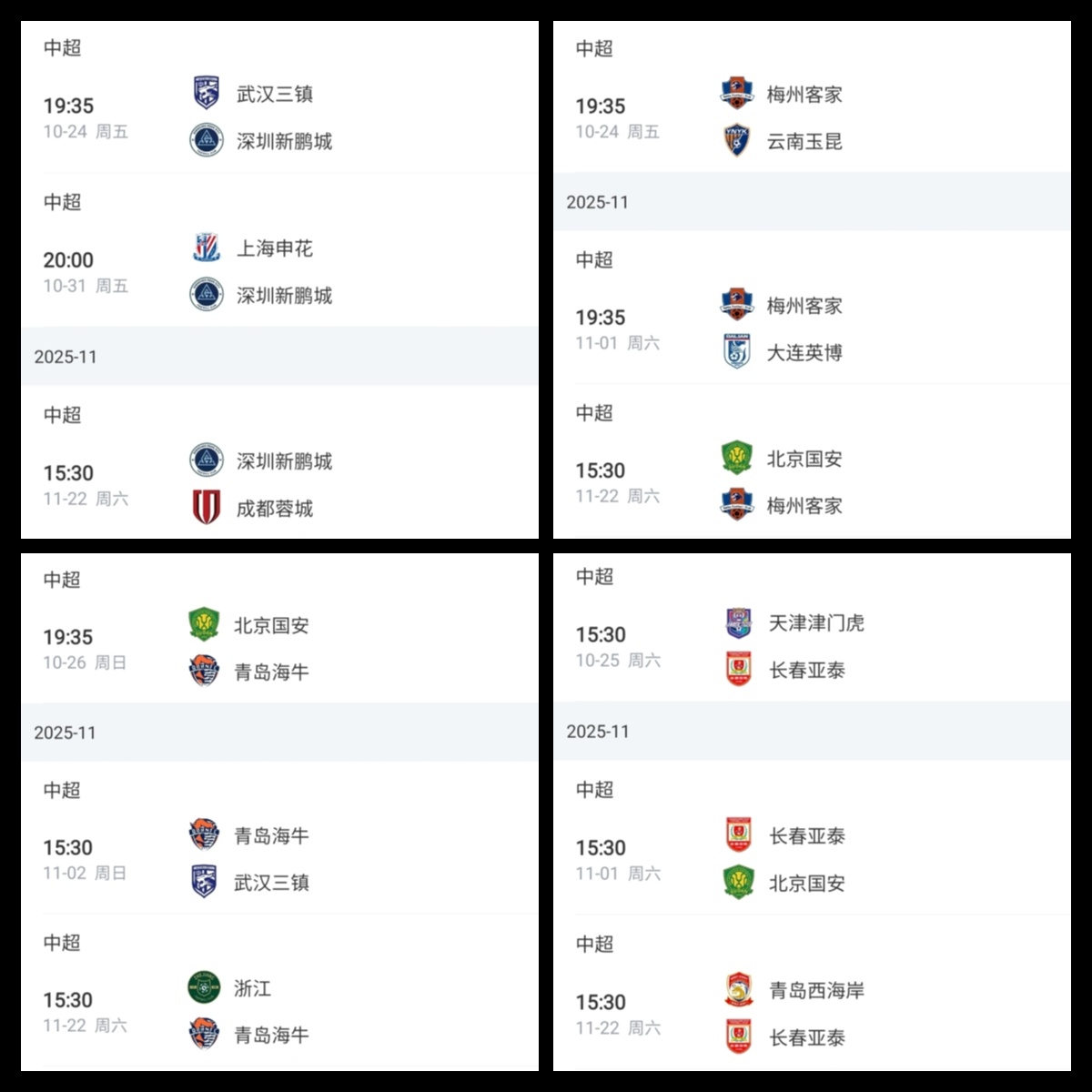 深圳新鹏城、梅州客家、青岛海牛、长春亚泰终末3轮赛程