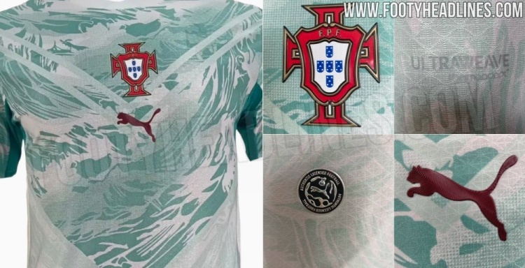 葡萄牙2026年客场球衣谍照:海蓝色主色彩+V字野心 配有图案遮挡