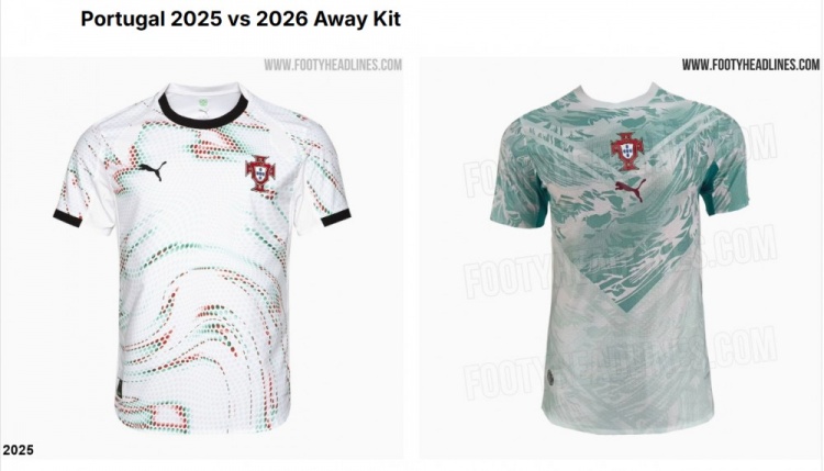 今明两年葡萄牙客场球衣对比