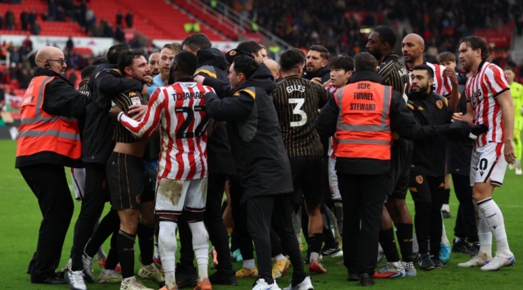 赫尔城在周六的比赛中以2-1打败斯托克城,但比赛已毕后却发生了活气足的一幕。乔·格尔哈特在比赛终末技能打入制胜一球,匡助球队完成逆转。有关词,在终场哨声响起后,场面马上失控。
