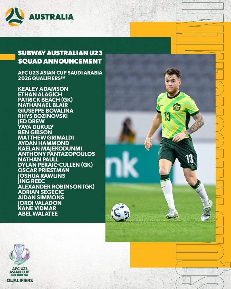 看成U22国足在新一届U23亚洲杯预选赛的头号竞争敌手,澳大利亚U22队今天公布了出征本阶段赛事的24东说念主球员名单。与中国U22队将适龄最优球员总共征调不同,澳大利亚U22队主要以插足球队此前两期集训的球员为主。