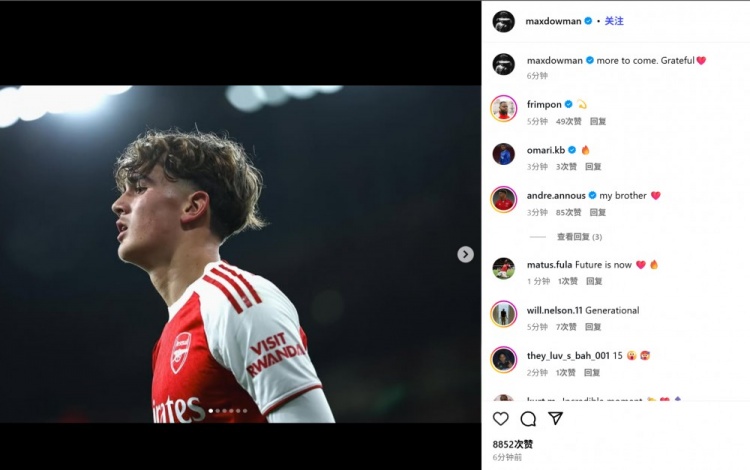 他也以15岁302天成为阿森纳队史最年青首发,谈曼也在赛后通过社媒晒出我方的比赛照并记挂谈:“期待更多,感德!”