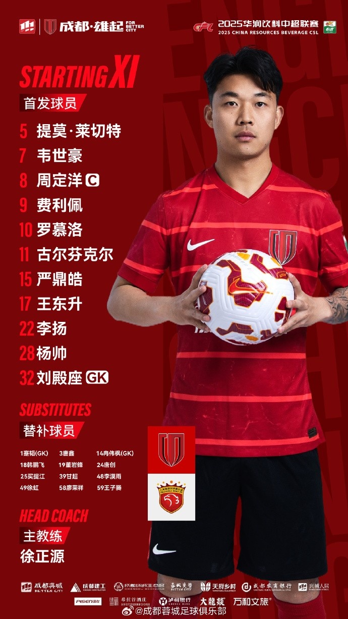 成皆蓉城vs上海海港比赛首发名单出炉!成皆,雄起!