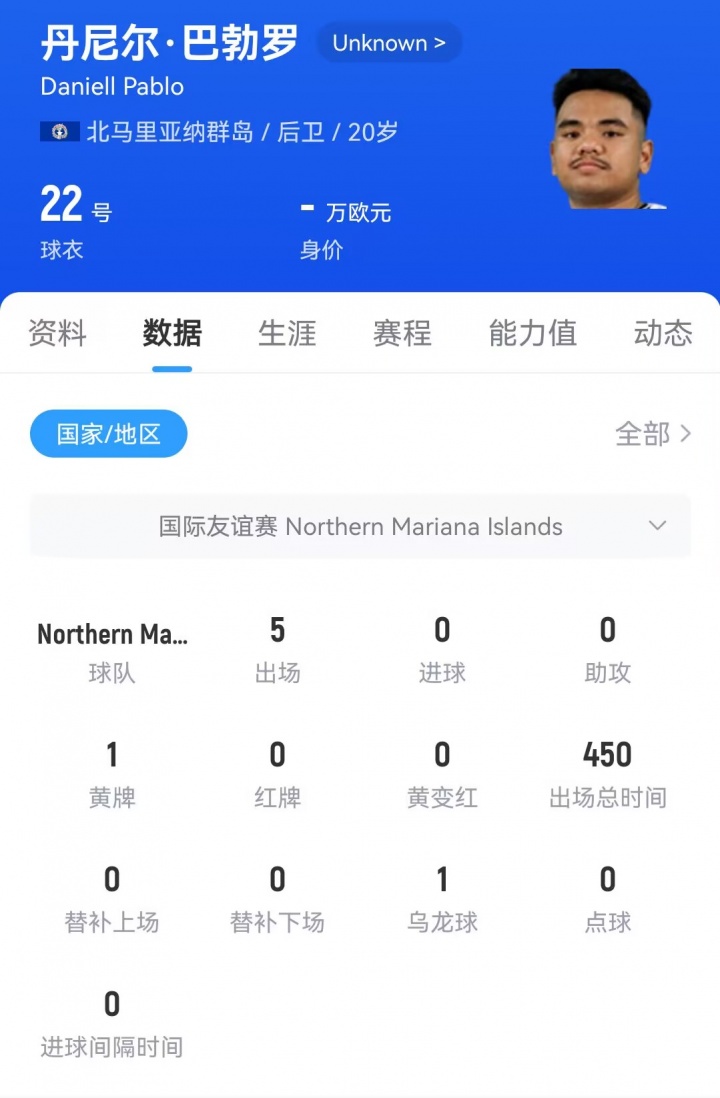 U22国足本场比赛的敌手,北马里亚纳群岛U23的东谈主员组成可谓非常多元:他们的首发/主力中卫,20号的丹尼尔-巴勃罗除了踢足球以外,还兼项打羽毛球,况且是一位肃肃注册的理解员以及评判员。