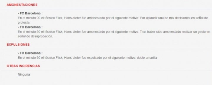 裁判阐显然示,弗里克先因为“饱读掌神志抒发抗议”吃到一张黄牌,随后又因为“作念出不悦的手势”再次吃到黄牌,两黄变一红被罚出场。