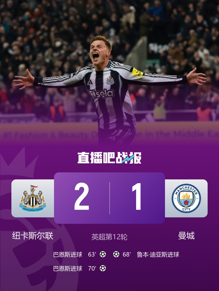 曼城客场不敌纽卡,巴恩斯梅开二度,两边屡屡浪费绝佳契机。