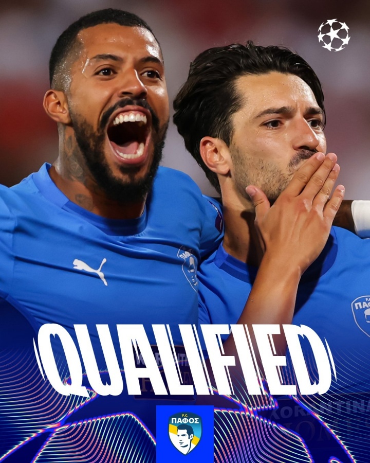 帕福斯两回合总比分3-2晋级,这家塞浦路斯俱乐部将初度在欧冠正赛亮相。